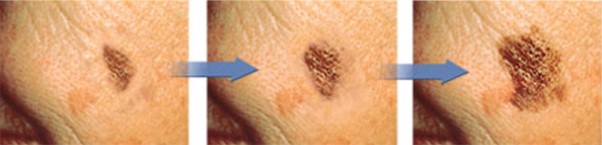 An example of change in a malignant melanoma. As you can see, this mole has more than doubled in size over the period it was photographed.ย Image source: https://servingnature.blogspot.com.au/